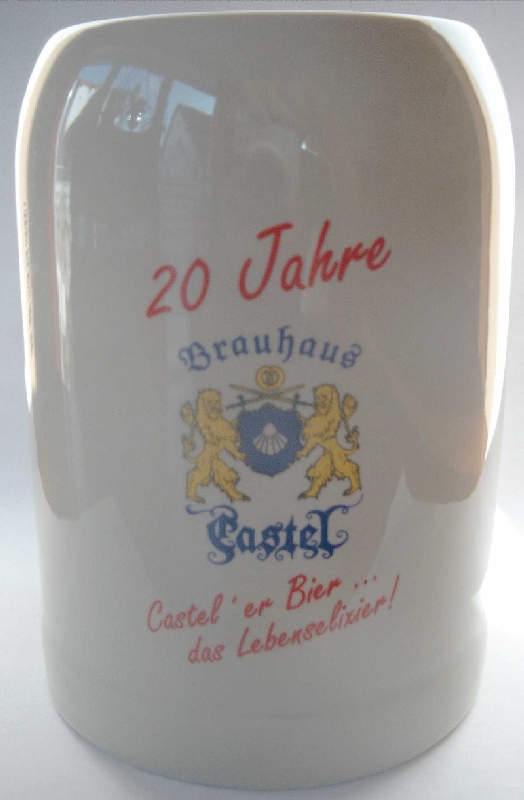 Musterkrug 1990 0,3 l und 0,5 l wegen falschem Wappen (Muschel nur 5 Zacken) nicht eingeführt Emailleschrift