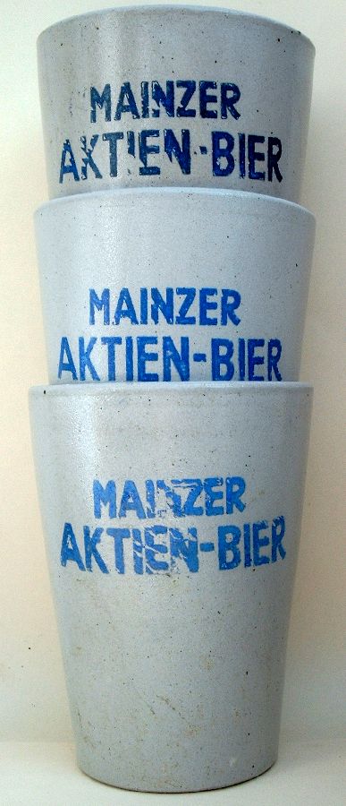 MAB 0,25 l “MAINZER” “AKTIEN-BIER” Grauer Becher, blaue zweizeilige Schrift (ohne Schutz-Marke oder Emblem)