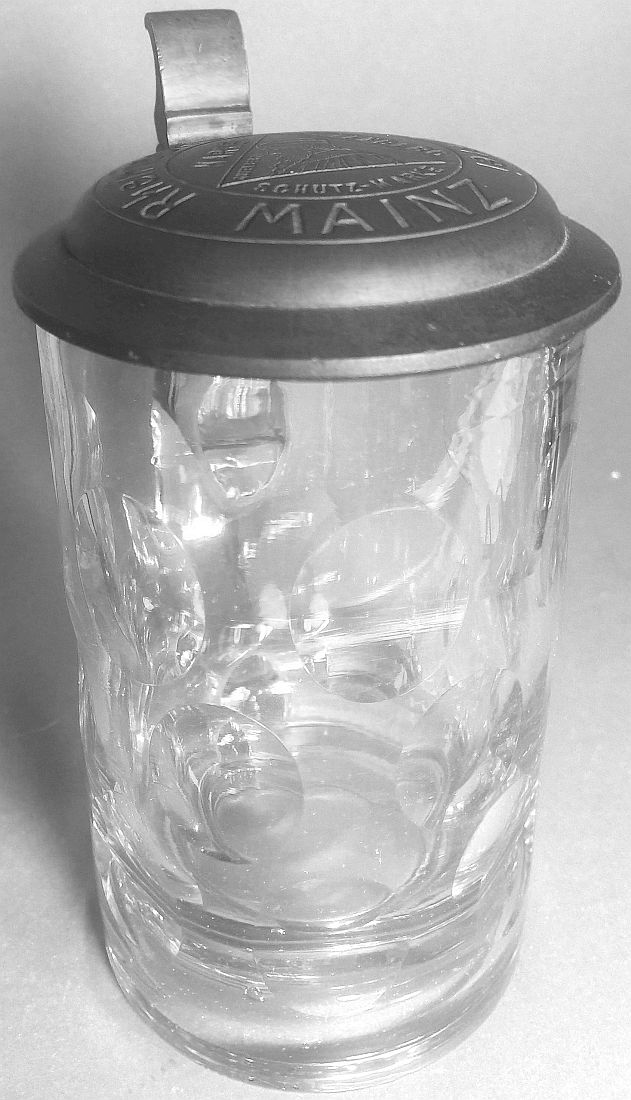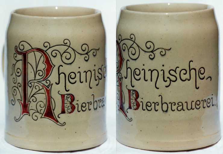 “Rheinische Bierbrauerei”, 2zeilig in Schmuckschrift. Großes “R” 0,4 L. mit Deckel Sammlung Kirchgessner