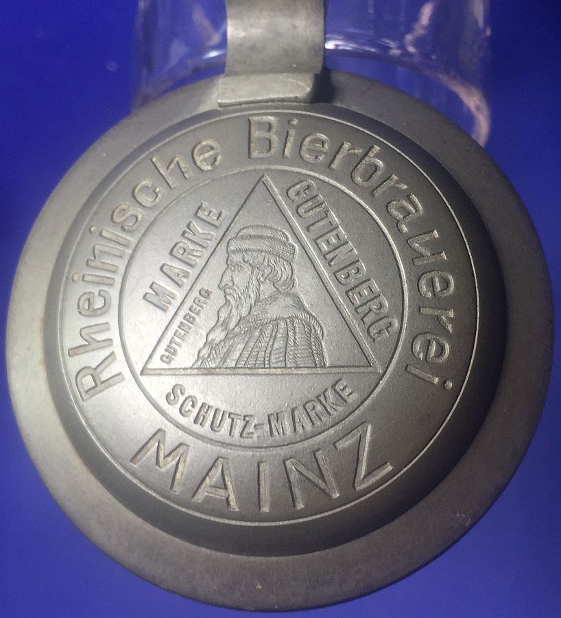 neutraler Krug 0,4 L mit Deckel Deckel mit Schutzmarke “Gutenberg”, Gewicht 813 gr. Sammlung Kirchgessner