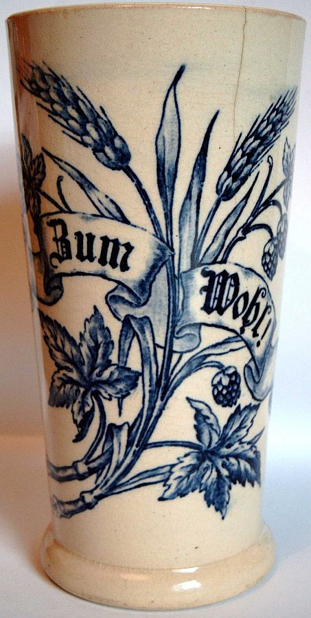 ohne Angabe, ca. 0,25 ltr “Zum Wohl!” in Gerstenähren und Hopfendolden Der Becher gehört zu einem Siphon.